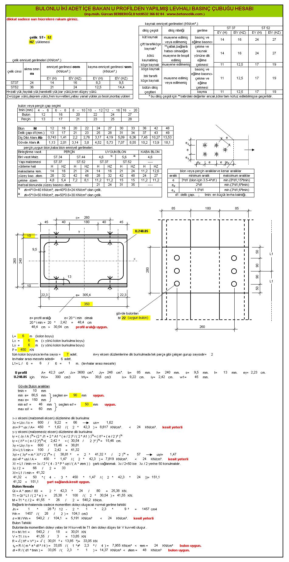U Profil Basınç Çubuğu Hesabı